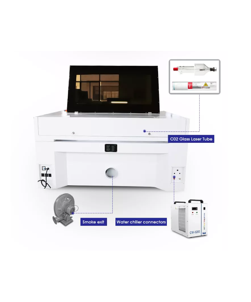 Une machine de gravure et de découpe au CO2 traite le matériau sans contact à l'aide d'une lumière laser. Cela coupe ou grave des objets avec une grande précision. Avec la gravure au laser, vous pouvez penser à graver des textes, des logos, des numéros de type ou des images